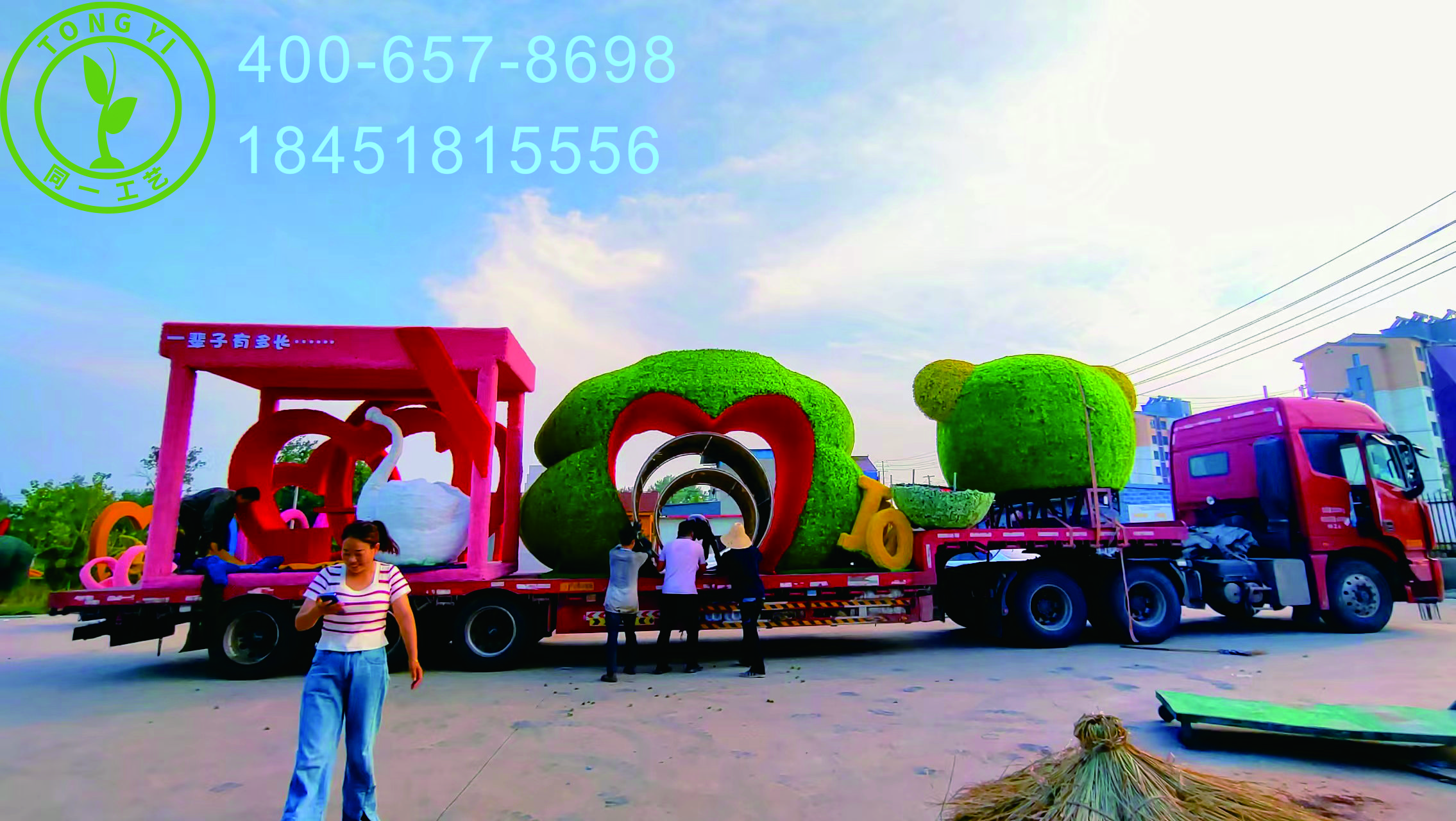 江蘇同一工藝品有限公司是一家專注于各類稻草工藝品 、卡通工藝品、仿真綠雕工藝品、立體花壇、輪胎工藝品 、五色草造型及仿真綠植墻、仿真花樹設(shè)計與制作的綜合性企業(yè),承接風(fēng)景區(qū)、旅游景點(diǎn)、花海山莊、農(nóng)家樂、兒童樂園、特色小鎮(zhèn)等場所的主題點(diǎn)綴,景觀小品穿插,局部亮化等一些人工布景項(xiàng)目。公司擁有先進(jìn)的設(shè)計理念,專業(yè)的制作團(tuán)隊,以獨(dú)特的工藝,打造新穎的綠雕、草雕造型,贏得了客戶的青睞與信任。